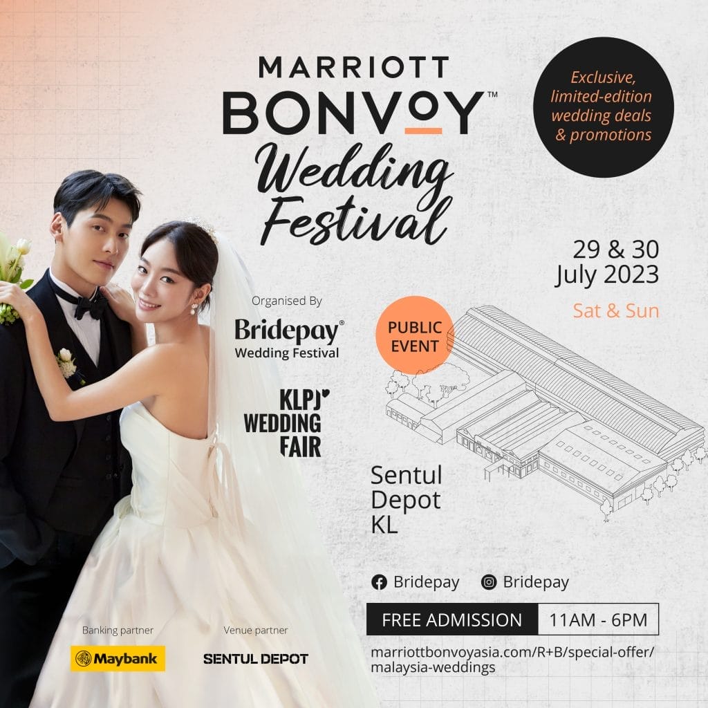 Organised by Malaysia’s top go-to wedding resource and marketplace Bridepay and KLPJ Wedding Fair, the Marriott Bonvoy Wedding Festival will be held in Workshop 3 of venue partner, Sentul Depot in Kuala Lumpur. Admission is free, with no pre-registration required. Throughout the weekend, guests will also get to participate in plenty of fun activations, including experiential workshops and fashion showcases that will ignite the creative spark! Alongside these activities, visitors can also indulge in welcome cocktails, refreshing mocktails, exquisite canapés and goody bags.